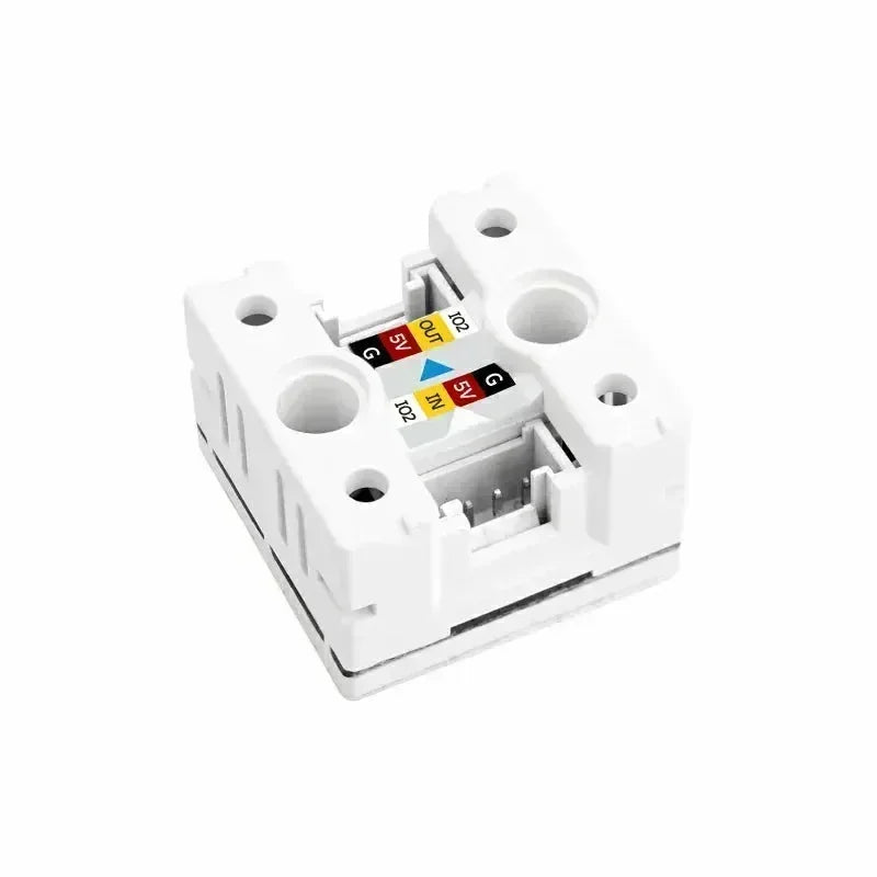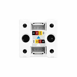 Unit-Puzzle is a compact multi-color light control unit featuring an 8x8 RGB LED array (WS2812E LEDs) with an isolation structure for clear and pure light output. It includes two Grove connectors for input and output signals, a connecting component for linking multiple units to expand displays, and a Grove IO port supporting additional M5 devices like potentiometers for interactive control. Designed for easy installation with an M2 mounting hole, its 24x24x15 mm size makes it ideal for smart lighting, decorative displays, and interactive installations.