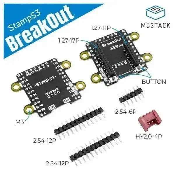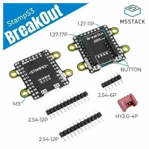 Introducing the StampS3Breakout board, the perfect expansion board designed exclusively for the M5StampS3. This versatile board simplifies connectivity by converting the M5StampS3's 1.27mm pitch pin to a standard 2.54mm pitch, making it effortless to connect with other devices.