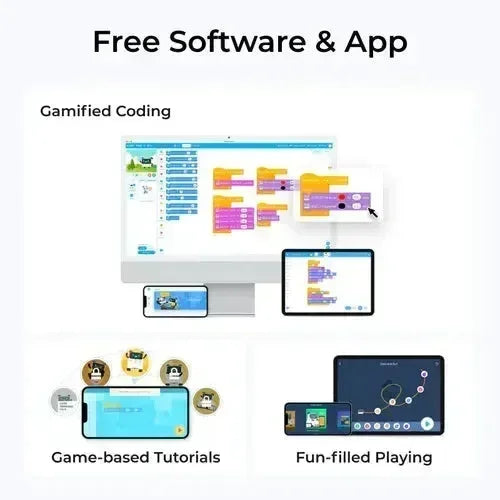 | Onboard sensor | RGB LED module, button, potentiometer, sound sensor, light sensor, gyroscope, accelerometer, IR emitter, IR receiver, IR color sensor, LED matrix, speaker |