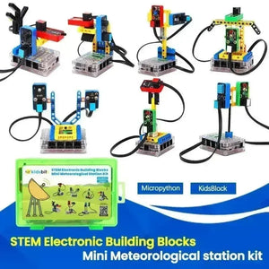Based on KidsBlock and python programming language, the Mini Meteorological Station Kit is designed for children aged 9-12 years old, which can be adapted to Legos and three types of main boards: kidsUNO, kidsIOT and kidspico.