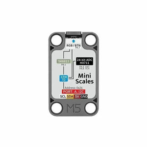 Mini Scales Unit is an integrated mini weighing unit that combines a 5kg weighing sensor, an ADC acquisition chip (HX711), and a protocol conversion MCU to directly output weighing results. The product is equipped with an STM32F030F4P6 microcontroller, uses the I2C communication protocol for external communication, and supports multiple modules working together.