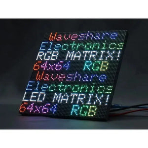 - 64×64 pixels, 3mm pitch, allows displaying text, colorful image, or animation