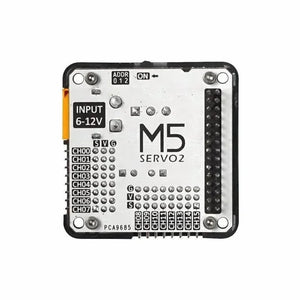 SERVO 2 is an updated servo driver module in the M5Stack stackable module series. It uses a PCA9685 16 channel PWM controller to control 16 channel servos at the same time. The power input is 6-12V DC and two SY8368AQQC chips are used for voltage reduction.