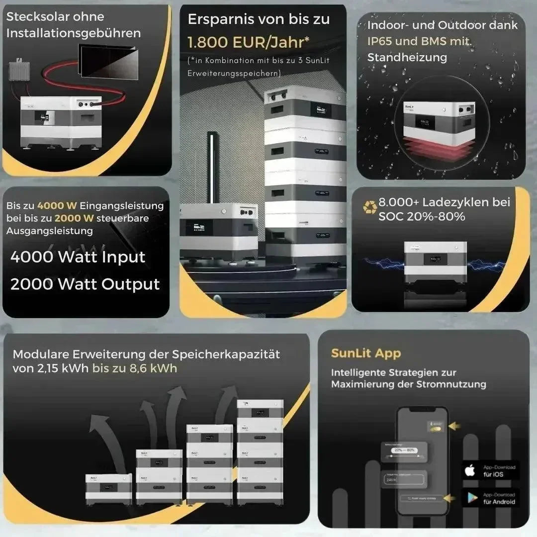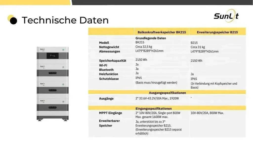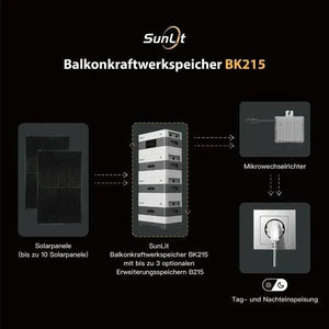 Maximize the performance of your balcony solar power system with the SunLit BK215 storage unit!