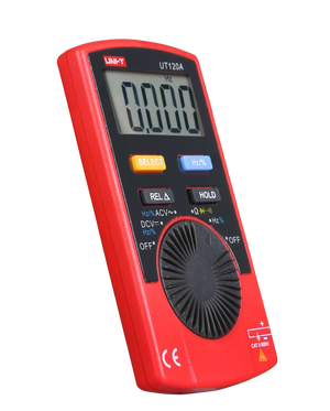 The UT120A is a compact, portable pocket-sized digital multimeter with 3 3/4 digit auto ranging. It offers full functionality, stable performance, high accuracy, low power consumption, innovative design, and reliable safety. Easy to use and wear-resistant, it is ideal for home, school, metallurgy, telecommunications, manufacturing, oil, power, and chemical industries for circuit and electrical equipment maintenance and repair.