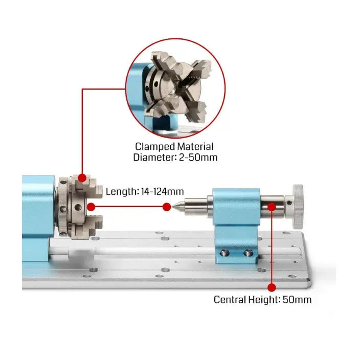 Genmitsu 4:e axelns roterande modulkitt är den ultimata uppgraderingen för CNC-entusiaster som vill utöka sin maskins kapacitet. Med stöd för fler-vinklig gravyr och full 3D roterande gravyr med kompatibel programvara öppnar detta kit nya möjligheter för att skapa intrikata mönster och komplexa former som ligger bortom räckvidden för traditionella 3-axliga CNC-fräsar.
