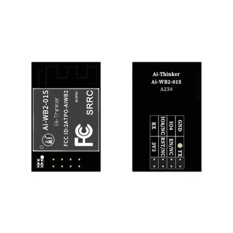 Ai-WB2-01S är en Wi-Fi och BLE-modul. Den är utrustad med en BL602-chip som kärnprocessor och stöder Wi-Fi 802.11b/g/n-protokoll och BLE 5.0-protokoll. BL602-chipet har en inbyggd 32-bitars RISC-CPU med låg strömförbrukning och 276KB RAM.