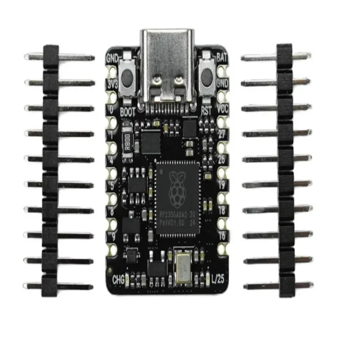 The Beetle RP2350 är ett myntstort, högpresterande utvecklingskort drivet av Raspberry Pi RP2350 mikrokontroller. Med dubbelkärnig bearbetning (ARM Cortex-M33 & RISC-V), 520KB RAM och 2MB Flash är den perfekt för utrymmesbegränsade applikationer som wearables, smarta hem-enheter och industriell IoT. Med inbyggd litiumbatterihantering, 11 tillgängliga IO:er och stöd för C/C++, MicroPython och Arduino, kombinerar den portabilitet, effektivitet och användarvänlighet—vilket gör den till den ultimata lösningen för kompakta, energieffektiva konstruktioner.