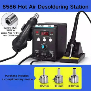 8586 Digital Display Lödstationsstation kombinerar en 700W varmluftspistol med ett 60W lödjärn, vilket erbjuder en mångsidig lösning för avlödning, lödning och reparationsarbeten. Med sin LED-skärmsvisning, förbättrade transformator och ren kopparlindning säkerställer den stabil hög effekt och exakt temperaturkontroll.