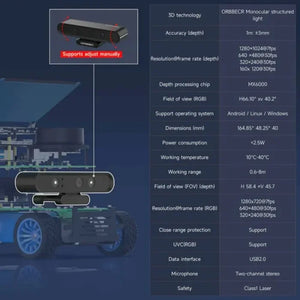 - Utrustad med professionella tillbehör som lidar, djupkamera, 7-tums skärm och röstinteraktionsmodul, har prestandan förbättrats avsevärt.